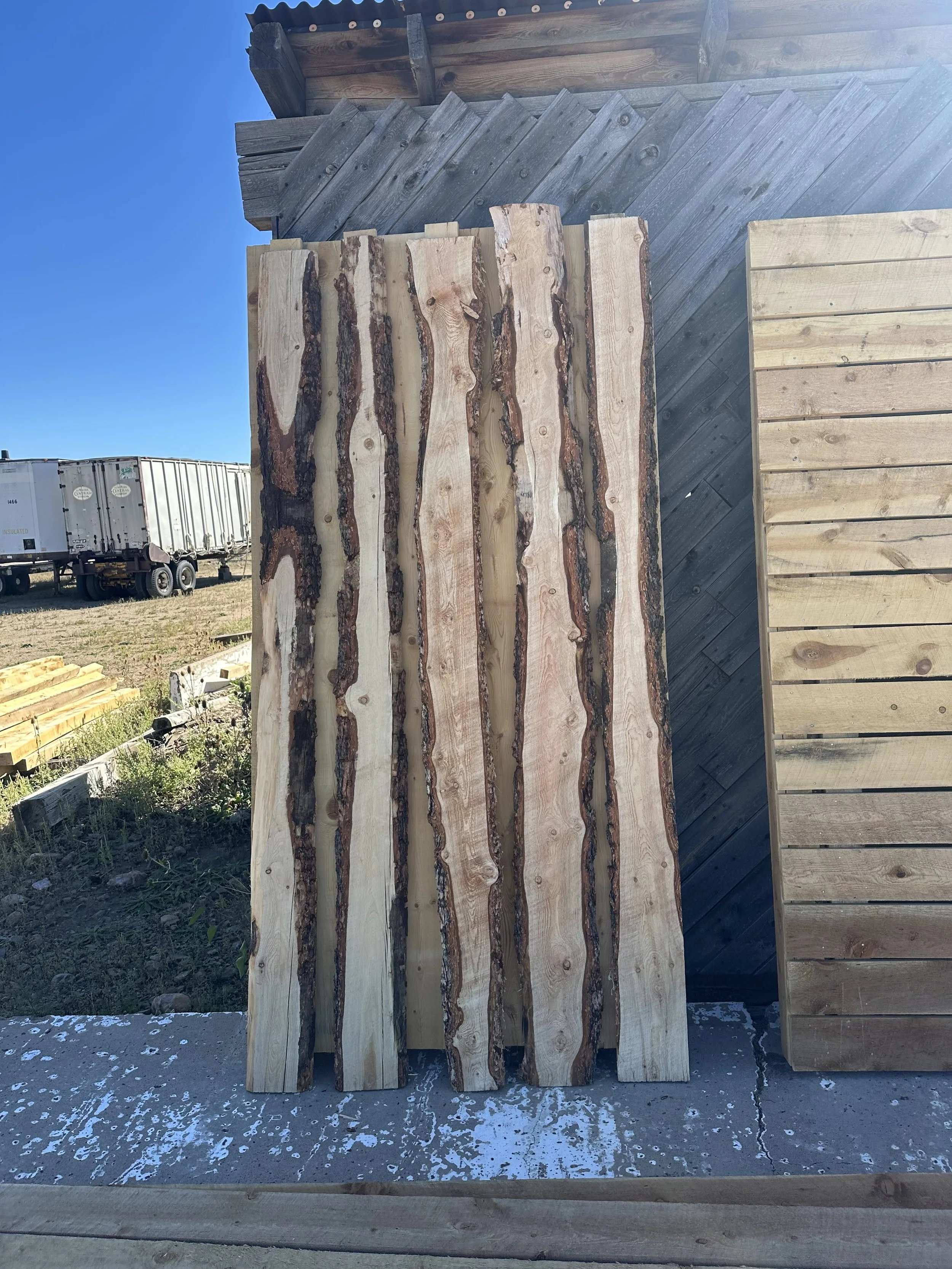 Wane-Edged Horizontal Siding: Characterized by a straight upper edge and a natural bark lower edge, this siding comes in widths from 6" to 14" and lengths up to 16'. Thicknesses can be ordered from 1/2" to 2".